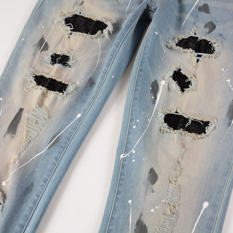 Diamonds Patch Ripped Blue Jeans